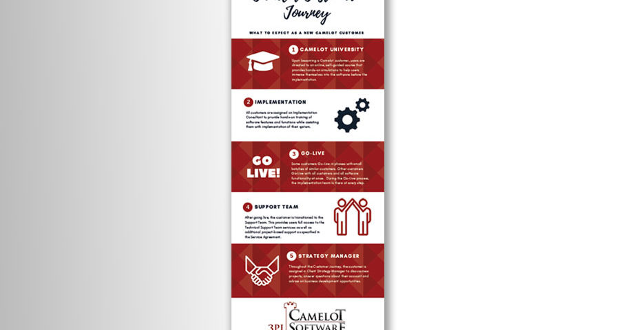 A Camelot Consultant’s primary goal is to provide implementation assistance in preparation for Go-Live. Some clients chose to Go-Live in phases with small batches of similar customers with hand-selected functionality. Other clients opt to Go-Live with all customers and all software functionality at once. Both implementation methods are viable but will vary in timeline and budget.