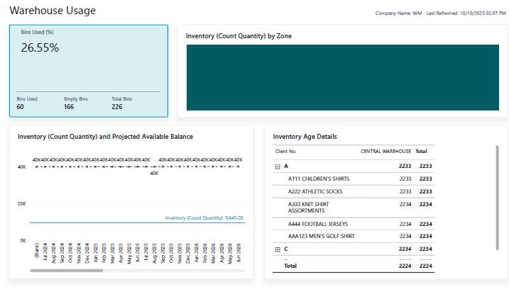 Excalibur Inventory ![]() Click to view example report | Real-time on-hand inventory across all warehouses, clients, and SKUs. Displays total inventory levels, committed vs. incoming stock, bin utilization rates, and inventory aging (how long items have been in storage). Users can drill from high-level summaries down to specific bins or items. | – Visibility of Stock: Know exactly what inventory is available or allocated, preventing surprises and stockouts. – Capacity & Space Optimization: Identify underutilized bins or overstock situations at a glance, enabling better slotting and space use. – Aging Alerts: Spot aging inventory to avoid obsolescence or to initiate first-in-first-out moves, improving turnover. This report supports smarter inventory planning and proactive warehouse management by highlighting risk areas (e.g. overstock or expiry) early. |